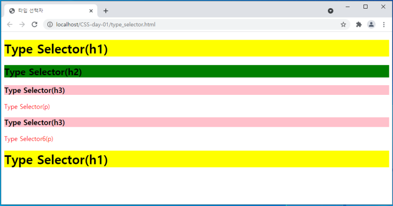 <h1>Type Selector(h1)</h1>