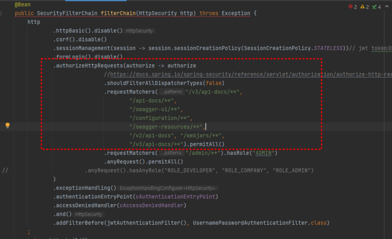 Error message : You are asking Spring Security to ignore Mvc [pattern='/v3/api-docs/**']. This is not recommended -- please use permitAll via HttpSecurity#authorizeHttpRequests instead.