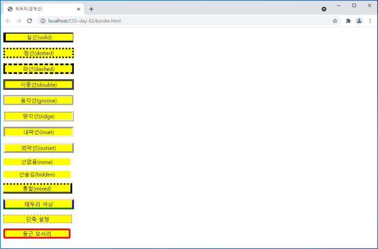 요소의 테두리 선을 표현하는 스타일 설정